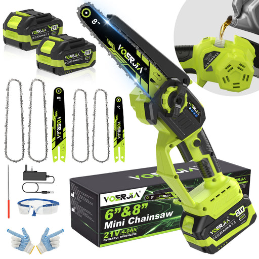 Visualizza tutti i dettagli【POWERFUL 2 IN 1 MINI CHAINSAW】Voerjia pole chainsaw boasts a game-changing 2-in-1 design, serving as both a handheld electric saw and swiftly tra...